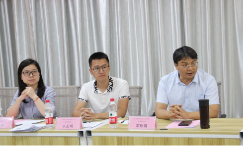 王志明、邓珍琪、杨洋在评审会现场听取申请人陈述个人情况