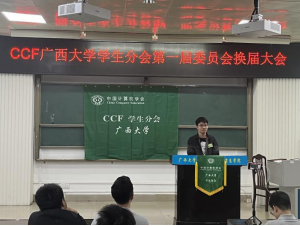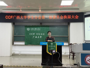 吕品老师首先致辞,他表达对现任执委工作的肯定,并鼓励分会员工会员积极利用好中国计算机学会CCF的丰富资源,不断提高专业水平。随后,分会现任主席涂欢同学就过去一年分会在学术科技服务、升学就业服务及素质技能提升三方面做工作报告。