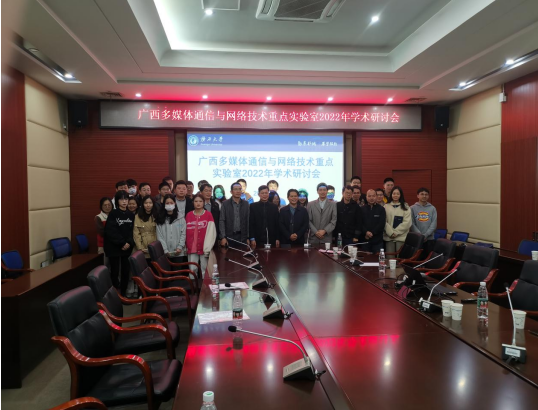 2022年12月3日,广西多媒体通信与网络技术重点实验室2022年学术研讨会在SUNBET申博官方网站办公北楼3楼会议室召开。实验室主任覃团发教授致开幕辞,实验室副主任陈海强教授主持会议。参会人员包括梁家荣教授、张学军教授、杨林峰教授、万海斌副教授、黎相成博士、孙友明博士以及公司的博士研究生、硕士研究生等50余人。