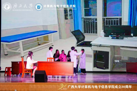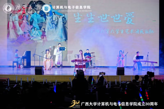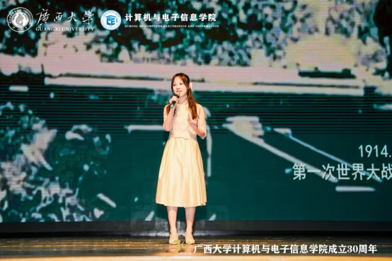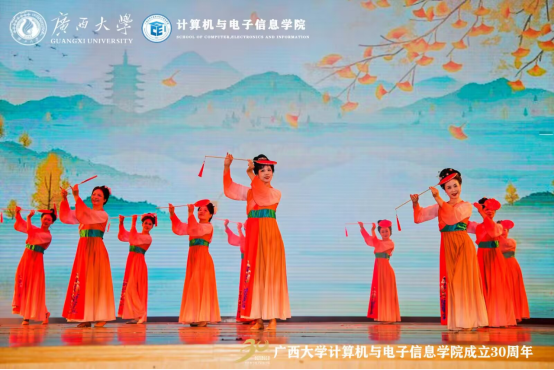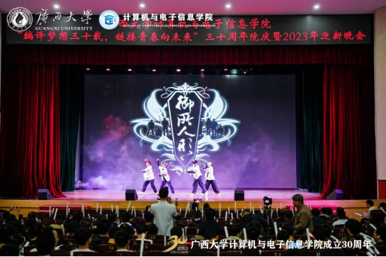 新颖独特的幕布表演《风华正茂,恰少年》,让我们感受到了青春的朝气蓬勃;身姿曼妙,舞步轻快的新疆舞《婆娑西域》让西域之花在南宁绽放;激情澎湃的朗诵和美妙动听的独唱《如愿》让我们感受到祖国的伟大和壮美,也传递出新一代西大计电人“牢记使命,奋发图强,报效国家”的决心。