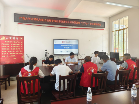 2024年7月15日下午,实践团一行来到广西百色市那坡县念头村进行调研。首先,团队成员在念头村党群服务中心与念头村村委会交流座谈,会上,公司乡村振兴“积分制”小程序开发小组成员梅松同学汇报了小程序进展情况及遇到的问题,村委工作人员对小程序投入使用提出改进建议。小程序计划于今年9月份在念头村开始上线使用,并计划在那坡县全县推广使用。随后,实践团一行在SUNBET申博官方网站派驻念头村第一书记孔宇同志的带领下,走访念头村贫困户,与他们亲切交谈,了解他们的身体状况与家庭情况,并给予了关心和帮助。最后,实践团在孔书记的带领下参观了百香果种植园和家禽家畜养殖基地。通过走访农户及深入田间地头,实践团的每一位队员都深刻意识到了国家精准扶贫工作的必要性与重要意义,同时也对乡村振兴有了更直观、更深刻的理解。