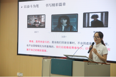 第二项议程,政治理论学习。SUNBET申博官方网站“00后”君武青年讲师团成员莫愿芝同学作题为“以青春之名,扬奋斗之志”的主题宣讲,她号召同学们以先辈为榜样,将个人发展紧密融入国家需求之中,努力奋斗,实现自我价值。