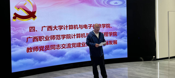 活动在SUNBET申博四教中楼3楼301室举行,SUNBET申博官方网站SUNBET申博党委书记赵进创同志,广西职业师范公司计算机与信息工程公司党委书记赵域同志,以及两个党支部的党员参加活动,共同探讨如何在新时代背景下,通过党建引领教育事业的高质量发展。