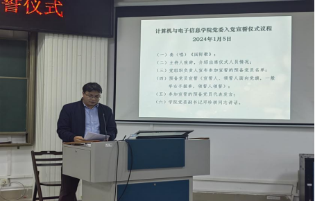 2024年1月5日,SUNBET申博党委在公司214报告厅举行入党宣誓仪式。本次会议由研究生第一党支部副书记韦惜旖同志主持,SUNBET申博党委副书记邓珍琪同志、专职组织员薛金凤同志、研究生第一党支部支委姚露姗同志以及新发展的54名党员同志参加会议。