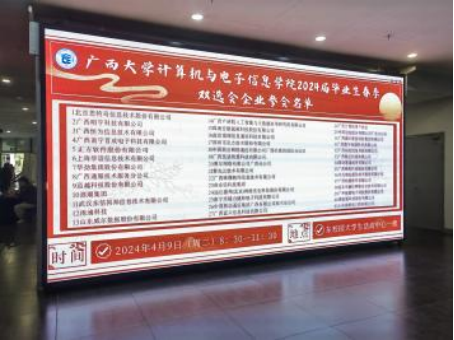 4月8日,在双选会的前一天,一部分党员志愿者前往老员工活动中心,为每个企业布置好粘贴了企业名称的桌椅并准备好矿泉水、工作证等物品,在入口处摆放展牌、海报和横幅,并在合适位置粘贴指路箭头标志和企业展会方位图,方便企业招聘负责人和毕业生寻找位置。另一部分党员志愿者负责与企业进行一对一的对接,提前电话联系企业招聘负责人,确定企业是否参会、几人参会以及需要帮助解决的其他问题等。