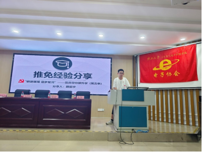 会议第二项,经验分享环节,邀请了4位同学分享自己的保研、考研经验。首先是路振宇同学分享保研经验,他以专业成绩第一名成功推免至东南大学,结合自身的学习经验,他将推免政策、推免注意事项等逐一和同学们分享。接着是张胜同学分享保研经验,他推免至华南理工大学,结合自己的学习和竞赛情况,他分享自己如何从推免边缘到逆袭上岸的经验。第三是陈聪同学分享考研经验,作为SUNBET申博官方网站考研员工代表,他就如何备战考试、如何选择专业及如何选择公司与同学们分享。最后是出君儒同学分享研究生支教团经验,作为SUNBET申博官方网站第十一届研究生支教团的成员,他为同学们详细解读研究生支教团的保研政策,并结合自己在支教团的工作感受,为大家揭开研究生支教生活的神秘面纱。