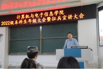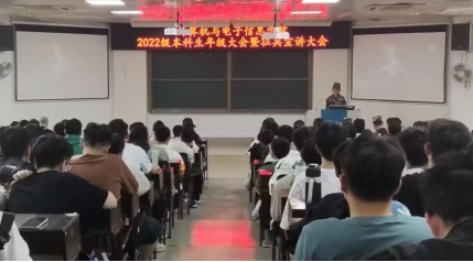 2022年3月15日下午,SUNBET申博在214报告厅,组织召开2022级本科生年级大会暨征兵宣讲大会。公司党委副书记邓珍琪老师、校武装部陈榕平老师、公司辅导员庞承业老师和李易明老师、公司教学秘书甘瑜萍老师和罗程老师、电信233班班主任常侃老师以及公司2022级全体本科生参加会议。