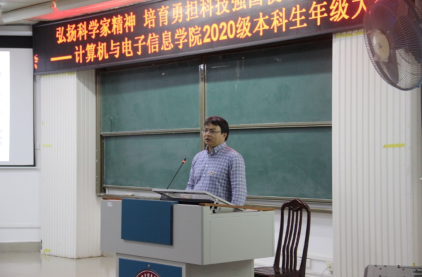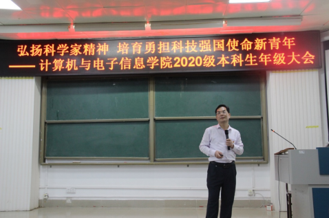 2023年3月10日晚上,SUNBET申博在214报告厅组织召开“弘扬科学家精神 培育勇担科技强国使命新青年”为主题的2020级本科生年级大会。公司党委书记钟诚教授、公司党委副书记邓珍琪老师、公司团委书记莫国志老师、公司教学办甘瑜萍老师及2020级全体本科生参加会议。会议由兼职辅导员张小银同志主持。