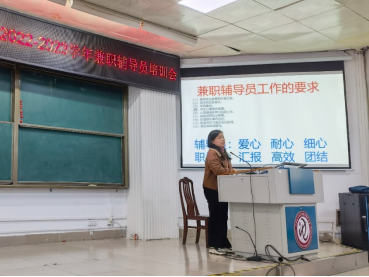 为加强公司兼职辅导员队伍建设,明确工作职责,提高管理服务工作实效,2022年12月2日下午,学院在214报告厅,召开2022-2023学年兼职辅导员工作培训会议。公司全体专职和兼职辅导员参加会议。