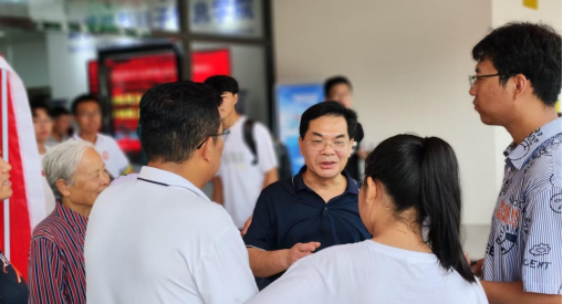 在迎新期间,公司党委书记钟诚教授来到新生报到现场,了解询问迎新工作的开展情况,问候关怀坚守一线的工作人员和员工志愿者,与前来报到的新生及家长亲切交流,及时了解新生的希望与需求,言辞与行动尽显关心与爱护。