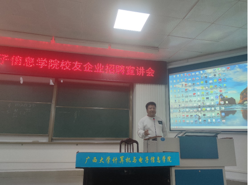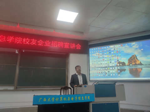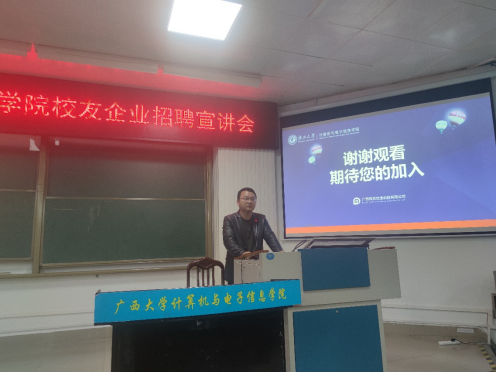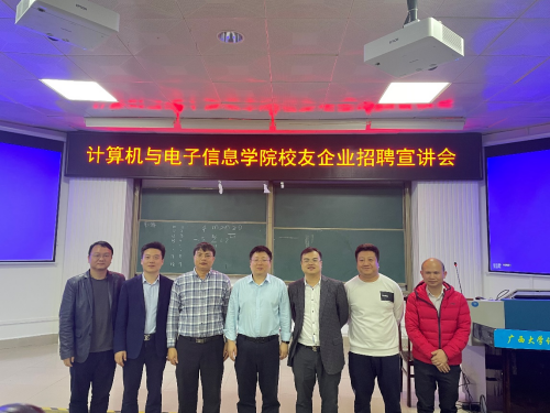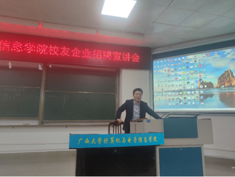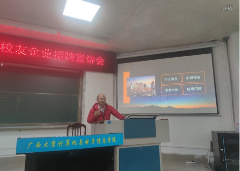 2021年12月16日下午,SUNBET申博与员工企业合作,在公司214报告厅召开员工企业招聘宣讲会,员工企业广西尚信品科技有限公司、广西迅驰信息科技有限公司、广西优乐俊智能机器人有限公司和广西码农信息科技有限公司、以及广西天海信息科技有限公司等5家企业到公司开展2022届毕业生招聘宣讲。